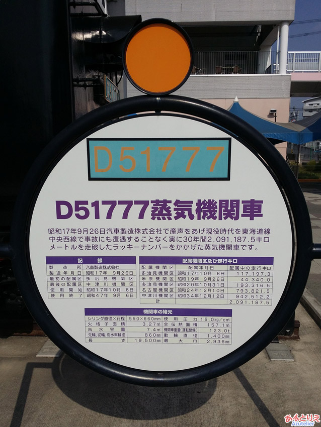 刈谷に置いてあるのは、D51 777。ラッキーナンバーです♪
