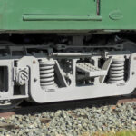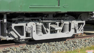 写真は、コロ軸受(ローラーベアリング)化改造されたD18形台車ですが、昭和55年(1980年)頃、それまで履いていたD16形台車から置き換えられたそうです。