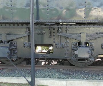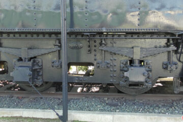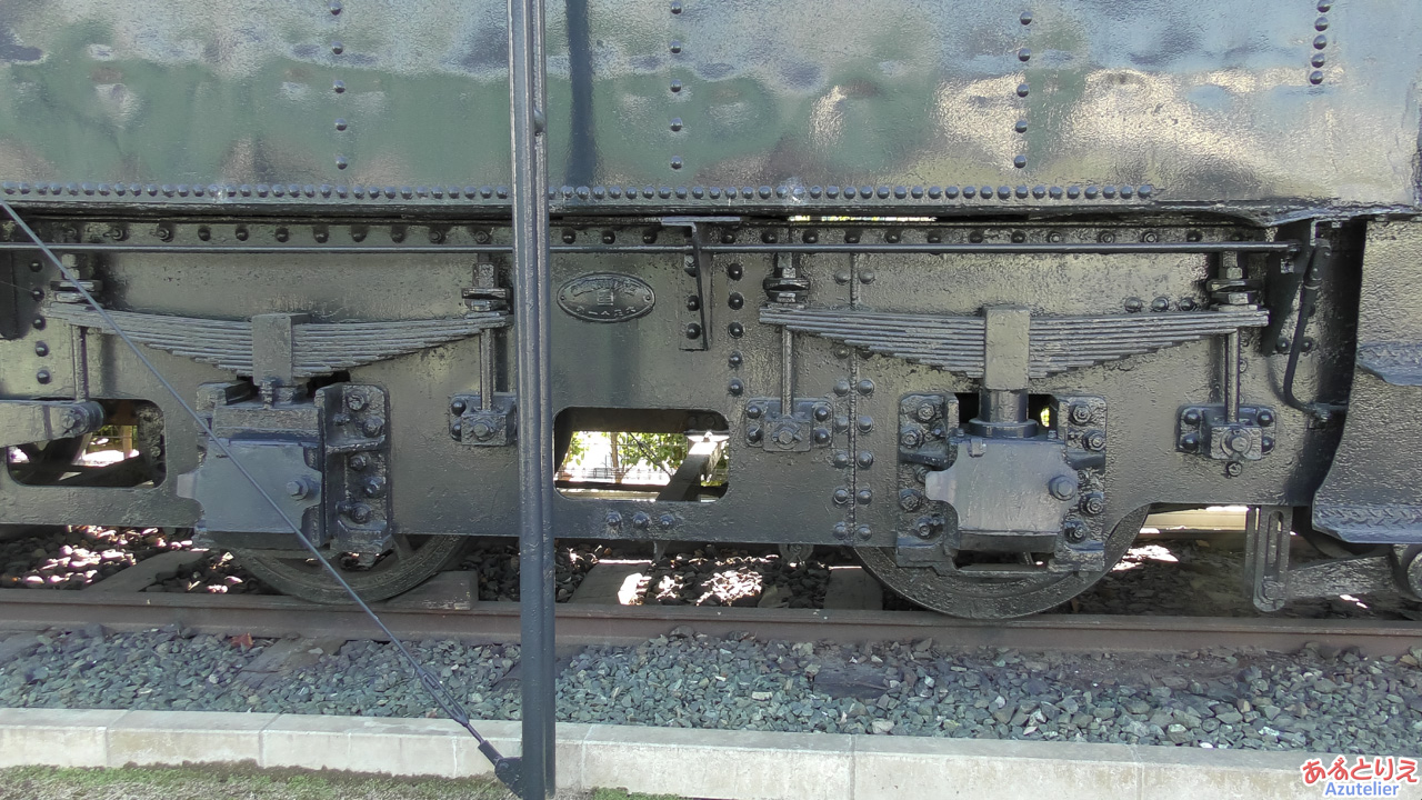 8620形蒸気機関車の炭水車は、3軸で、四点支持法という方法で取り付けられています。独立した前1軸の左右、後2軸は左右別にイコライザーで各担バネと結ぶ支持法です。