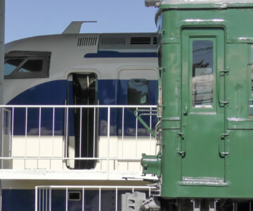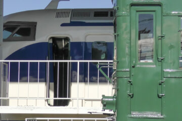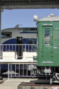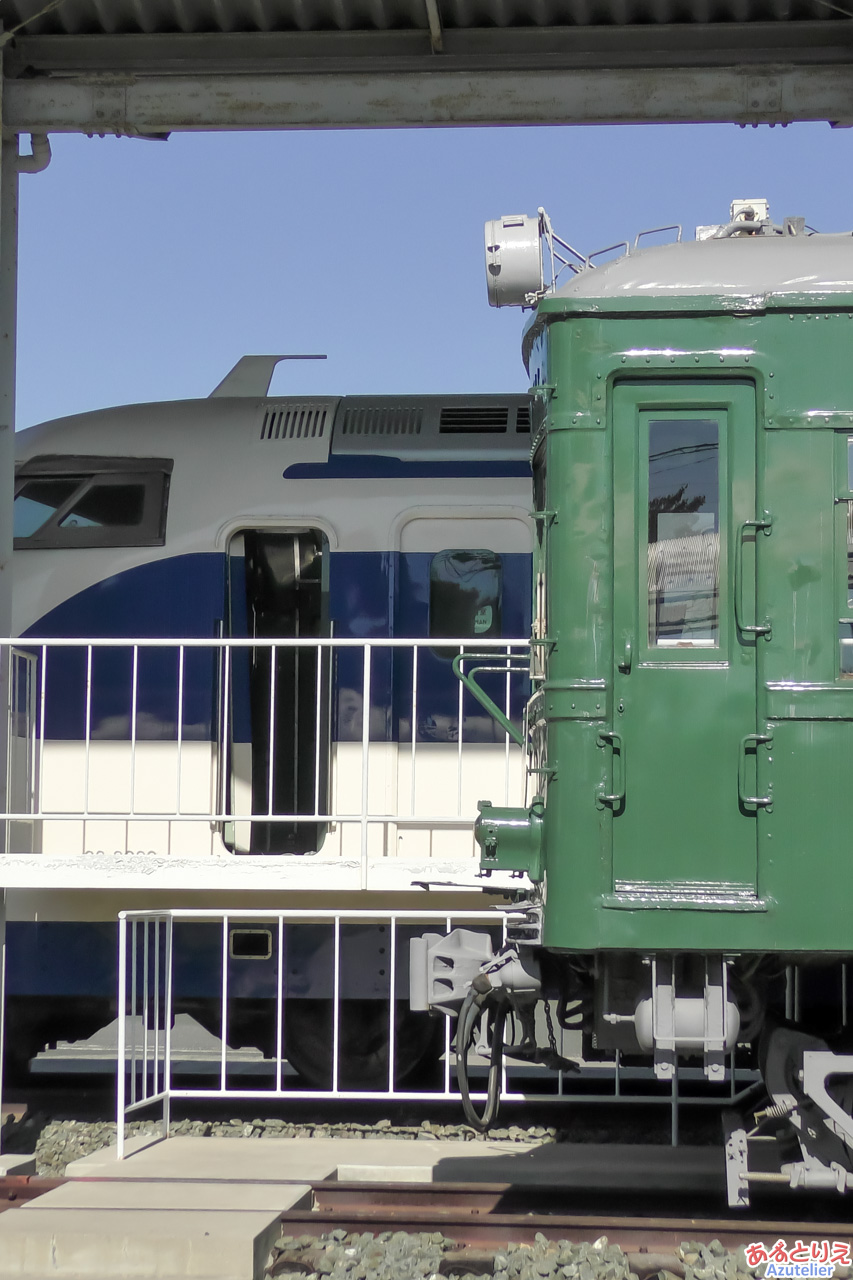 左横から。 新幹線の方の乗務員扉が開いています。 もちろん係員の方が入るためですが、入ってみたいですね♪