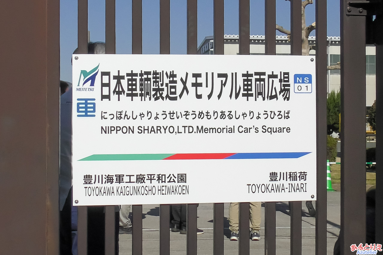 日本車両では、名鉄の駅名標を模した看板もお目見えしました。