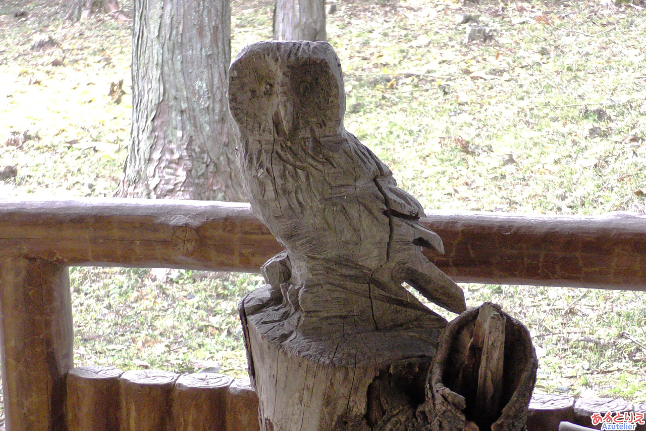あずまやの中には、なぜかフクロウの木彫りが鎮座しています。 毎年このフクロウに会いに来るのも、ひそかな楽しみだったりして!?