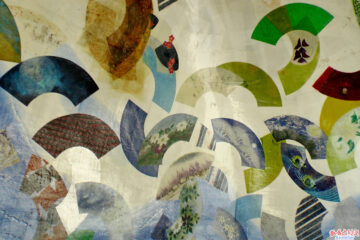 小原和紙の空間は、小原工芸和紙の専門家である小原和紙工芸会が「自然の叡智」を具現化し製作しました。 展示スペースとなるドーム状の本体を和紙で製作し、内部を和紙漉き込み作品で装飾しました。 外部は地球と宇宙の平和と発展を表し、内部は日本伝統のモチーフである扇面流しにより、自然との共生を表しています。扇は、各作家の感性により制作しました。