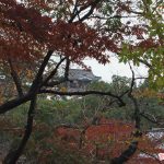 乙川堤防右手に、木々の間から岡崎城が見えました。