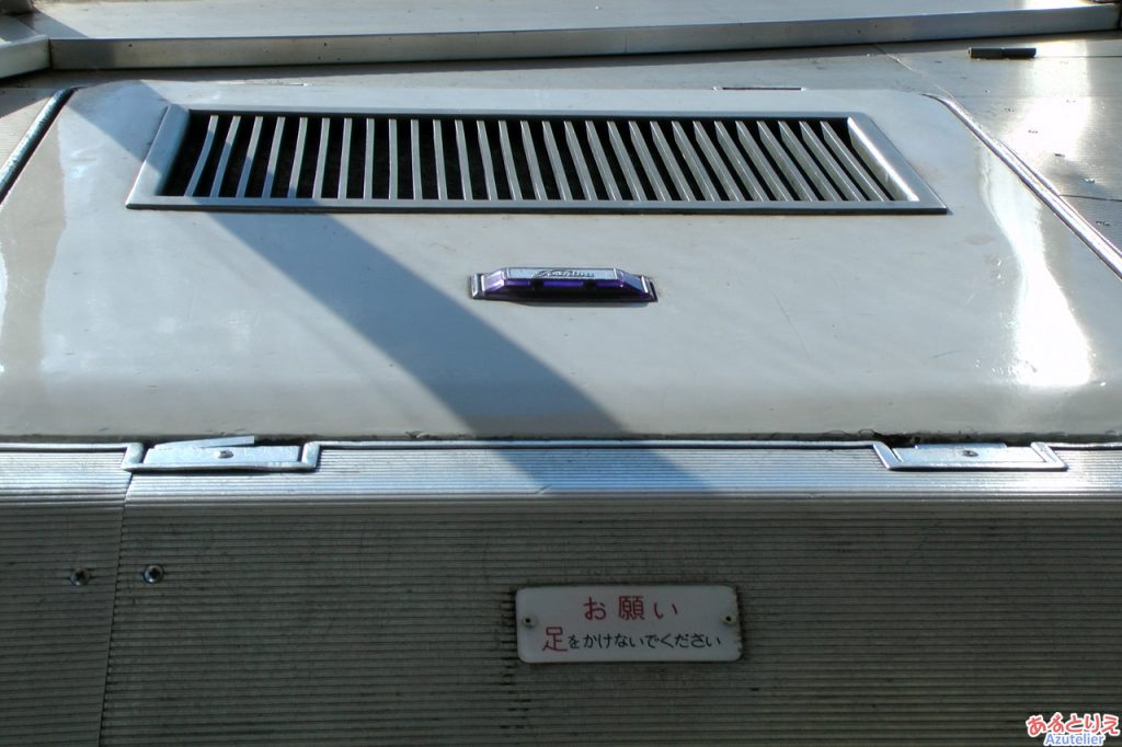 久しぶりにパノラマカーを見て、個人的にもう一度見たいな、と思っていたのが、この、ステンレスの窓枠の「落書き」。好きな人の名前とか「あいあい傘」とか…。なんか、展望室で落書きをすると恋が叶う、のかは知りませんが…、時代を感じませんか?