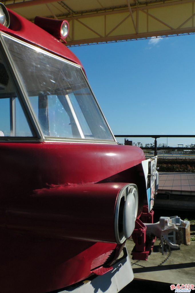 ちなみに、行き先表示板脇の前照灯が「前照灯」「尾灯」の役割を果たし、一見、尾灯に見える、前照灯の脇の白い部分は、ダンプカーと衝突しても大丈夫なように、緩衝器(オイルダンパー)になっています。